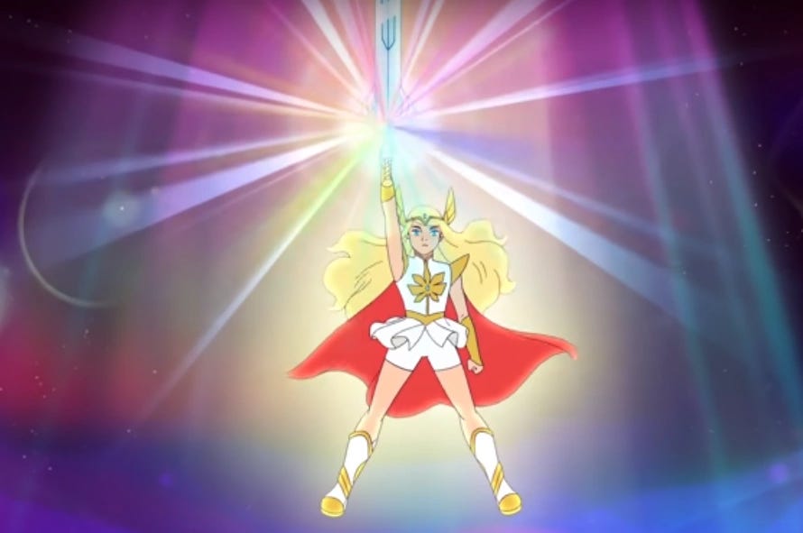 I’m delighting in this She-Ra style imagery (I much preferred the later version, the one that happened recently. Although the music of the earlier She-Ra was probably better!)