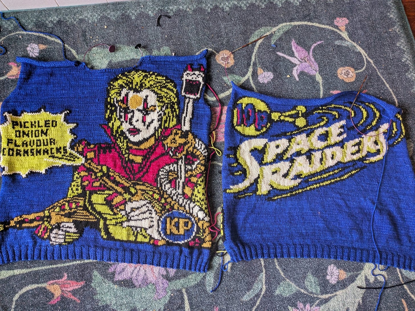 If I was to say to my wife, could you knit that for me? That would take a year, maybe. I recently asked my wife to, I say recently, it was last year. I asked my wife to knit me a jumper. She said, I’ll do anything. And I requested an 80s crisp packet design. Which took her a while.