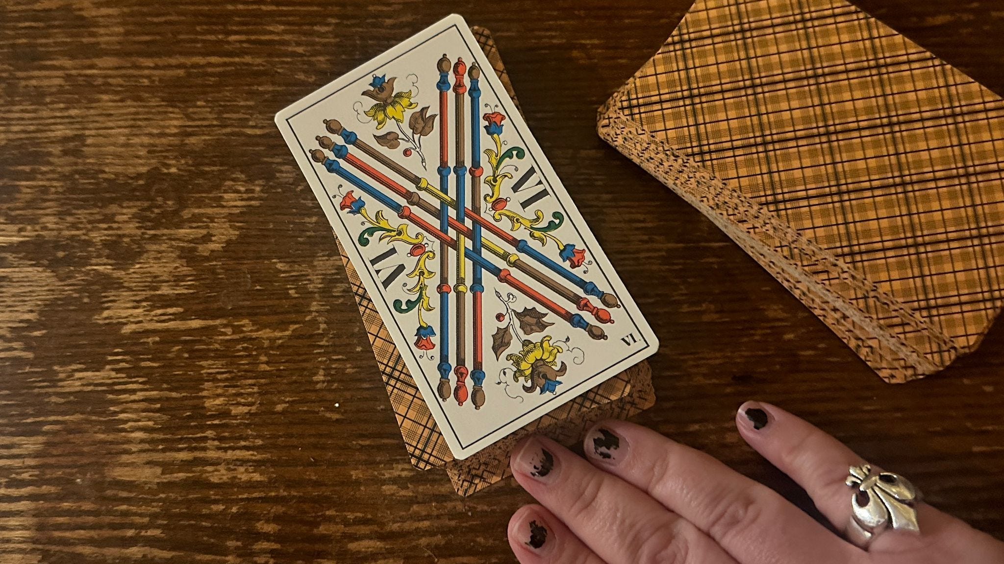 But then I also realized my characters, it felt, especially with one of the characters that quite appropriate, it felt very hard that she would be interested in tarots. So I wrote her as someone who had these very beautiful decks that she’d inherited. And I asked friends to do some readings for my characters.